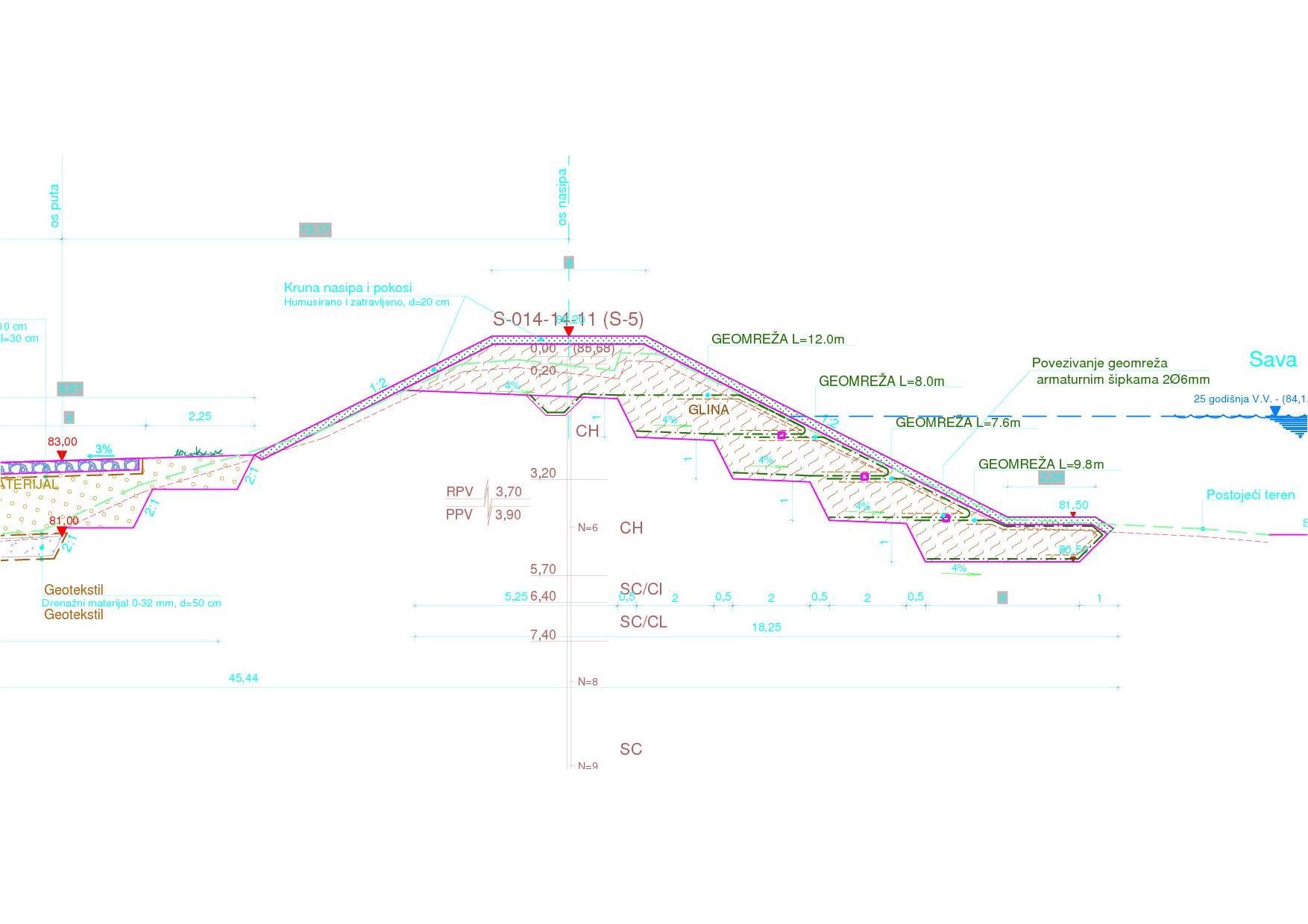 Prikaz alternativnog rješenja sanacije nasipa uzvodno od odrona